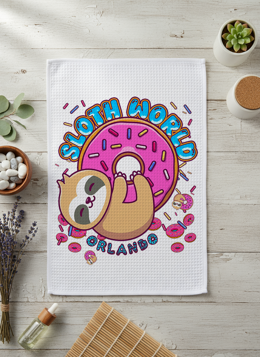 Make drying dishes, wiping spills, or simply adding a touch of whimsical charm to your home an absolutely delightful experience with our "Glazed & Amazed" Sloth World Heavyweight Microfiber Waffleweave Towel! This isn't just any ordinary towel; it's a daily dose of happy, designed to bring smiles and superior functionality into your kitchen or bathroom.