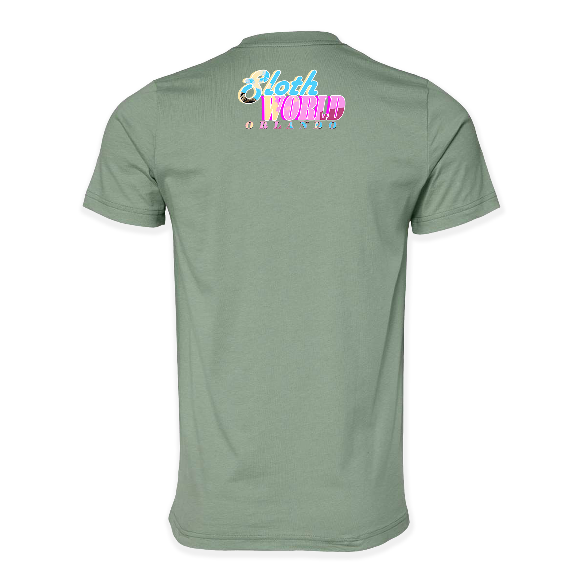 Welcome to where the wild meets the wonderful: our "The Neon Sunset Sloth" t-shirt! This intriguing design takes you on a visual journey, presenting a thought-provoking tableau where a serene statue's face contrasts with the knowing gaze of a sloth. The backdrop is a gradient sky of pastel hues, suggesting an otherworldly "Sloth World Orlando" where anything is possible.