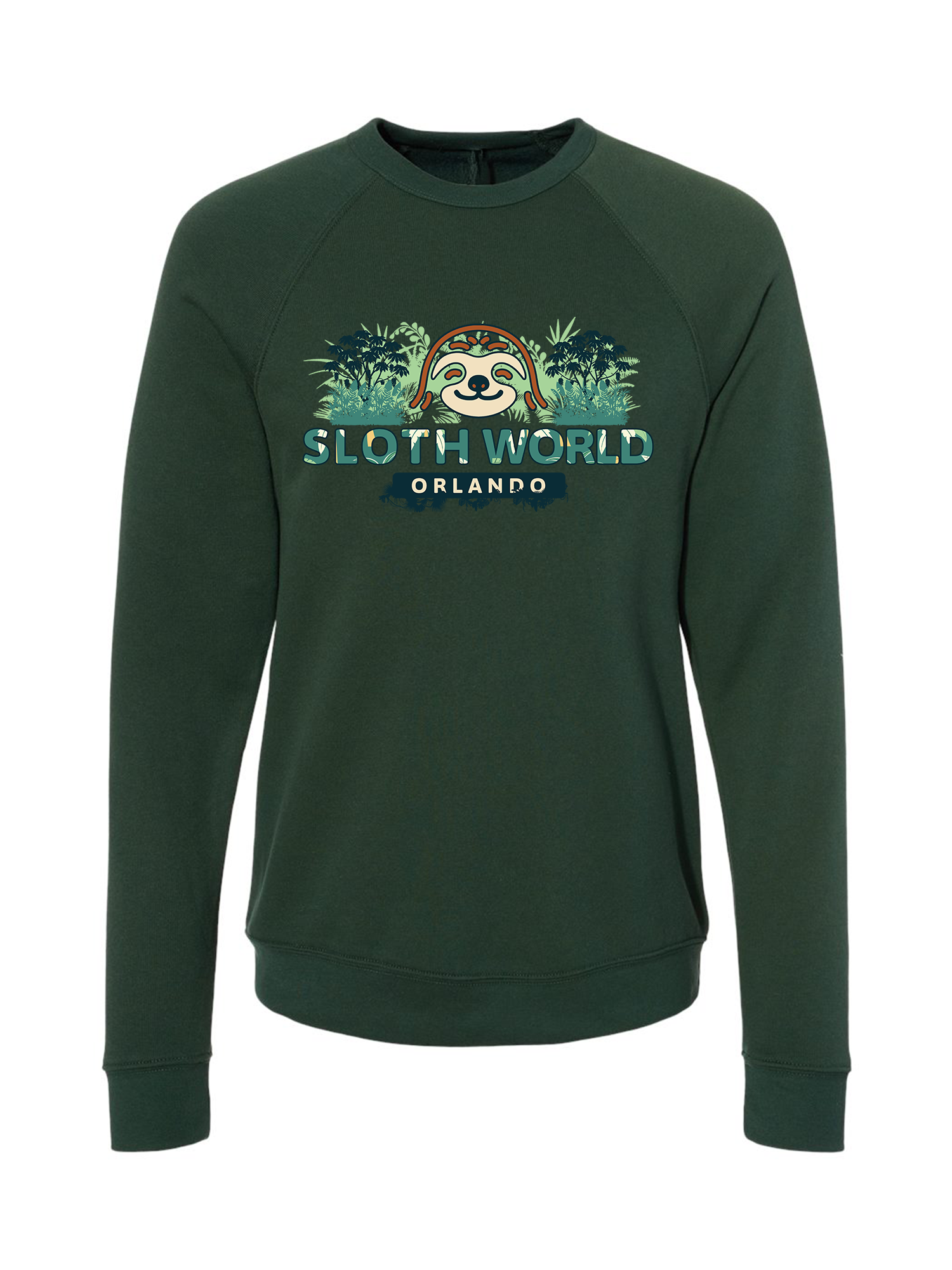 Rep the pack in style with our official Sloth World Orlando logo sweatshirt. This classic design features our signature happy sloth peeking through a canopy of lush jungle leaves, perfectly capturing the spirit of our sanctuary.